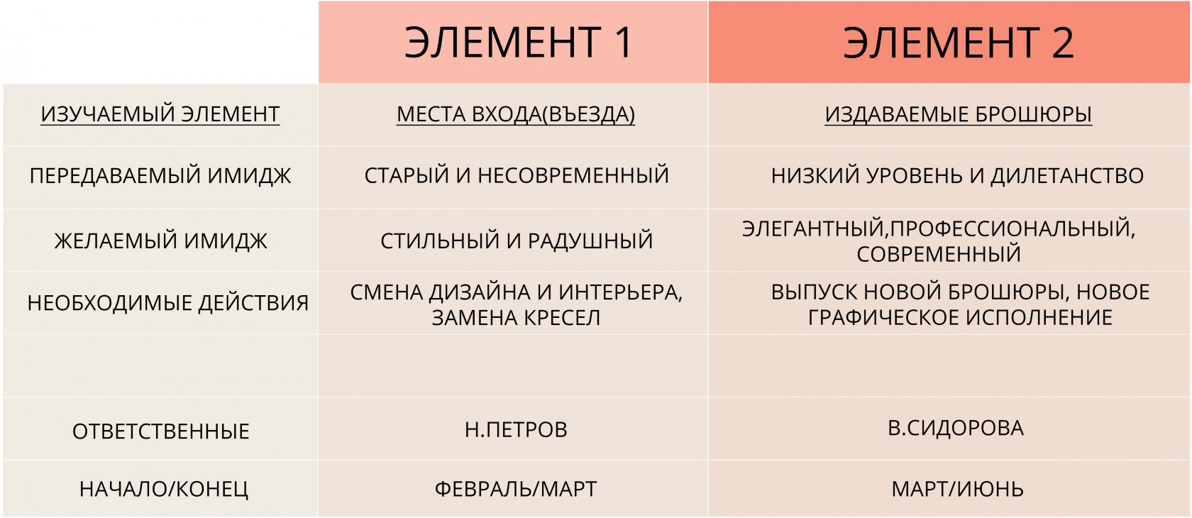 Это пример упрощенной матрицы, которую легко приспособить к вашим потребностям и которая поможет вам планировать действия, направленные на аудит имиджа